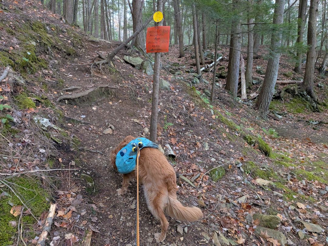 The woods were very pretty despite it being brown season. Note that, during this hike, Sunny was only off-leash in the climbing wall area. We are in hunting season now and it's best if he stays tethered. He also wore double bells today, just to be on the safe side.