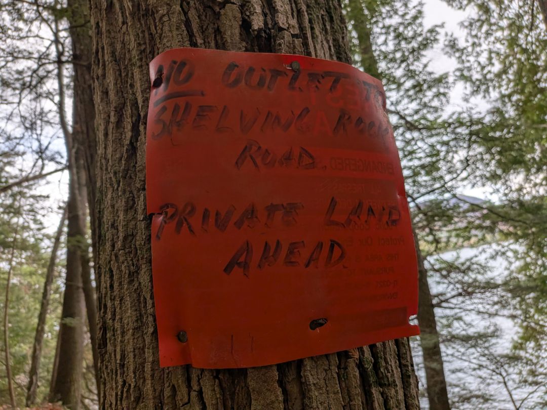 According to the maps, both the Ridge Trail and the Lakeside to Shelving Rock Trail were a very short bushwhack away from our current location. I'd decided we would take the ridge trail to Black Mt. Point, then return along the East Shore Trail, so we set off downhill North.