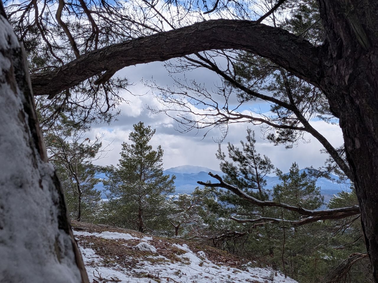 It was difficult to really make out what I was looking at, especially with the big ones so obscured. Still, despite the weather and the naked trees, the views were quite invigorating today. It was cool to watch the flurries blow across the countryside and the constant gusts of wind enveloping the distant mountains in their own snow.