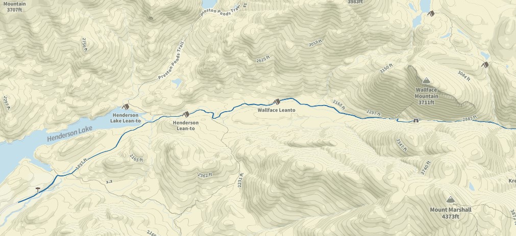 - After that, the trail breaks away from the lake and starts a gentle climb between MacNaughton Mountain and Mount Marshall. It's on this 2-mile stretch where both the Henderson Lean-to and the Wallface Lean-to lie.