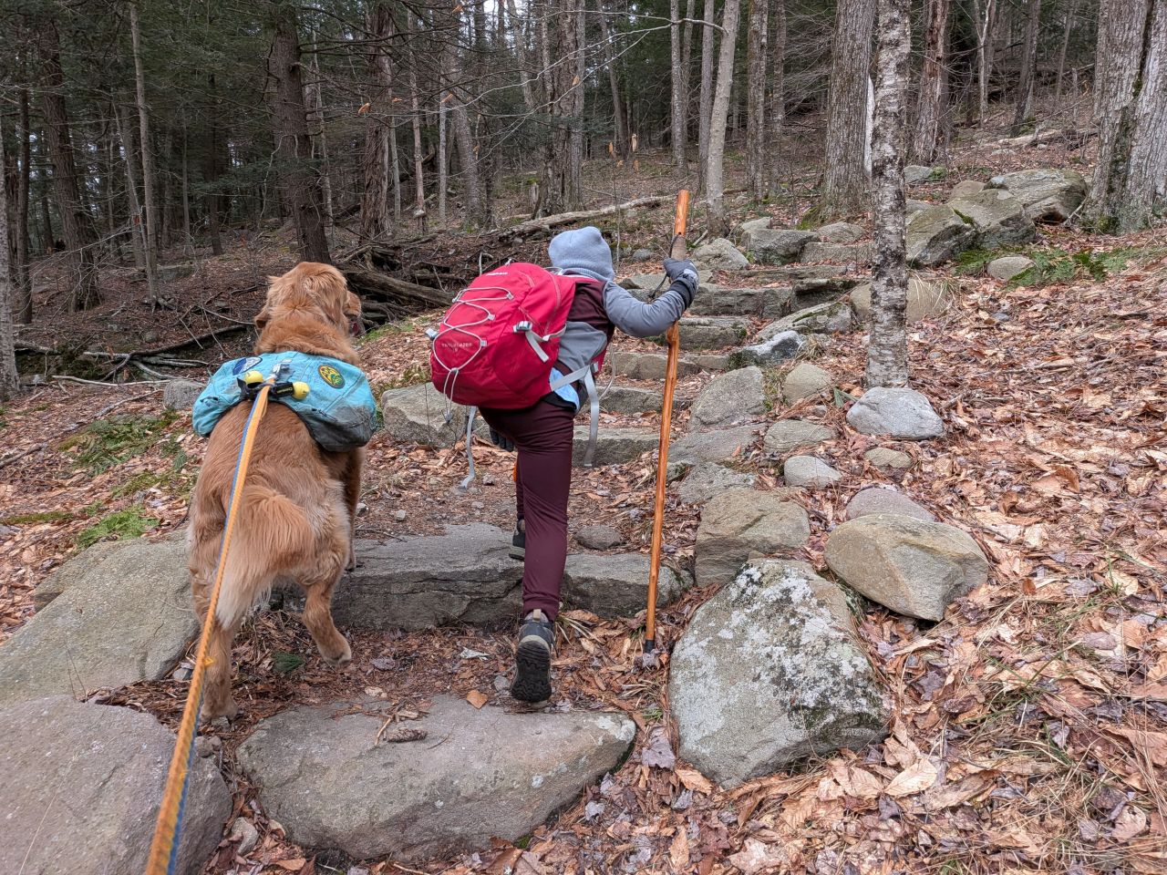 The trail started off with some rock stairs and there would be lots of these throughout the hike. Sunny was eager to pull but I was very cautious of bears and the very close private property near this trailhead. He stayed leashed for a while.