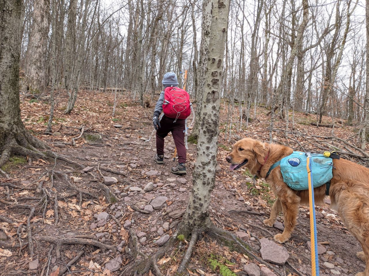 We stopped at the Biscuit Brook Trailhead along the way to see if I could find my trekking poles from the last hike. My trekking poles were gone. Fortunately, I'd had the foresight to pack us each a hiking stick. On this hike Quinn used the one my buddy, John, had gifted me and I was using one Quinn's Grandpa had given me.