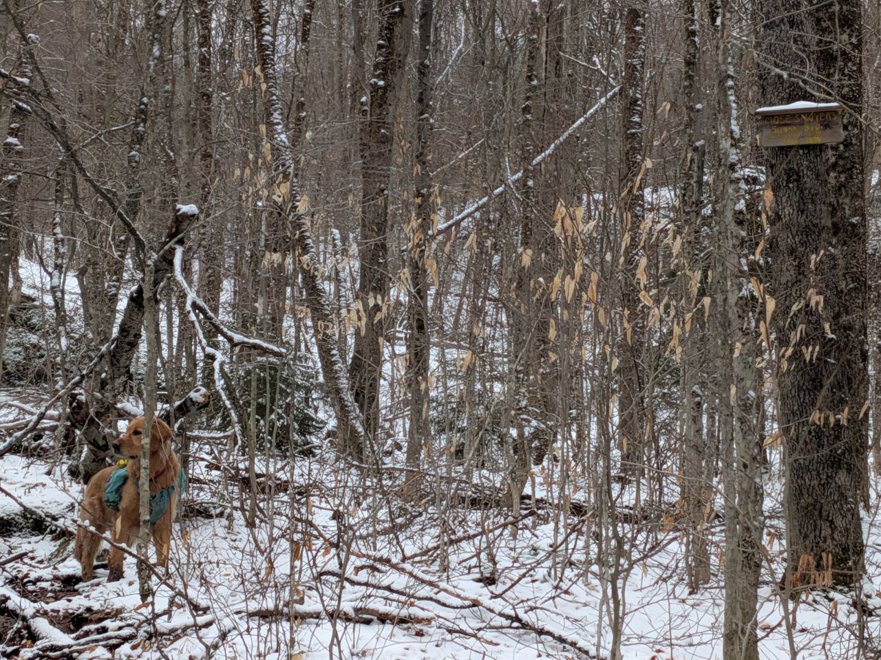 Oddly, shortly after this, we found a tree with a red trail marker nailed to it, despite the fact that the markers should be yellow and no other trail intersected there.