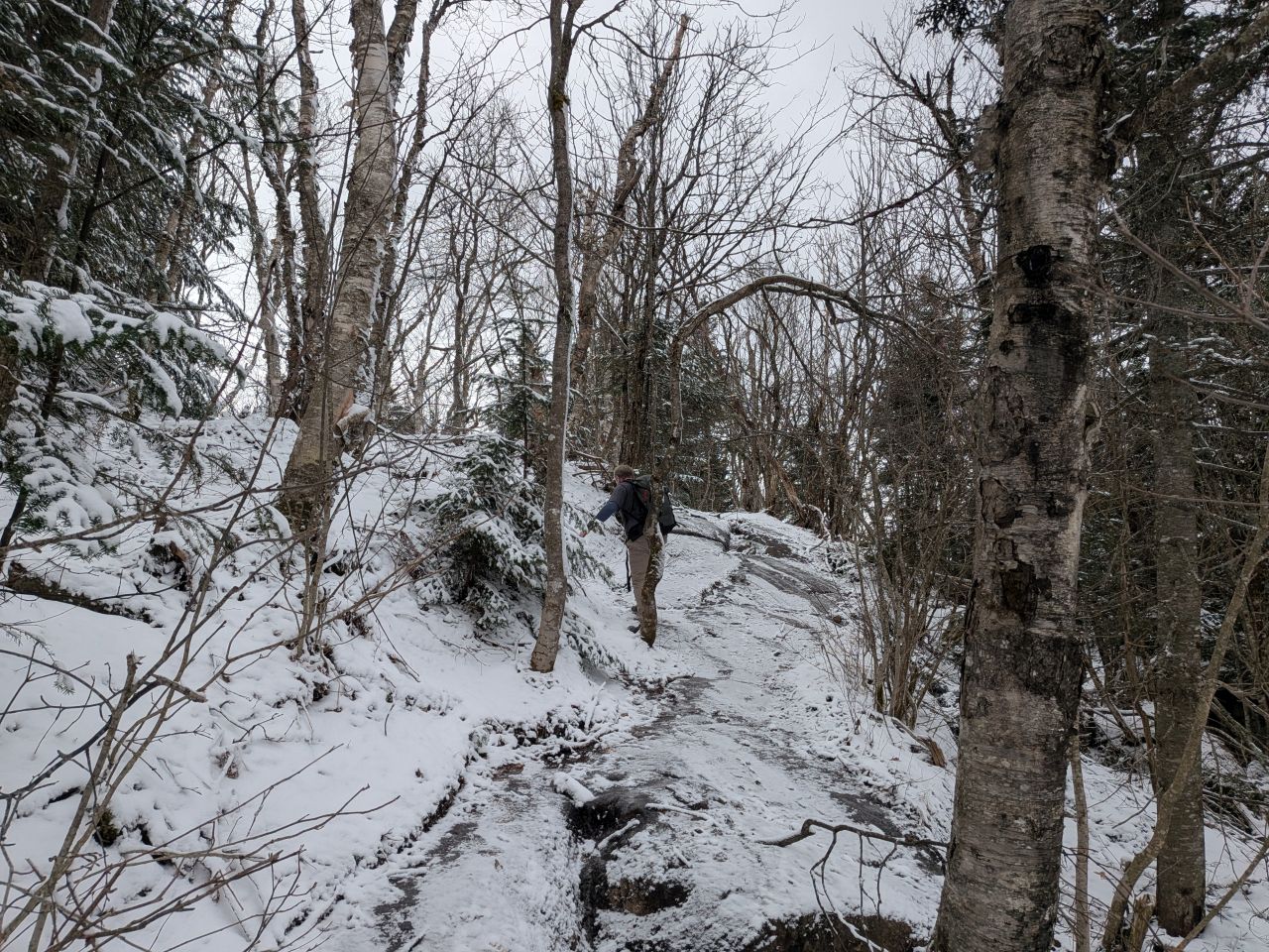 After a short time at the summit and a quick chat with another hiker, we started back down. We made the descent without incident despite the patches of ice on the top third of the mountain.