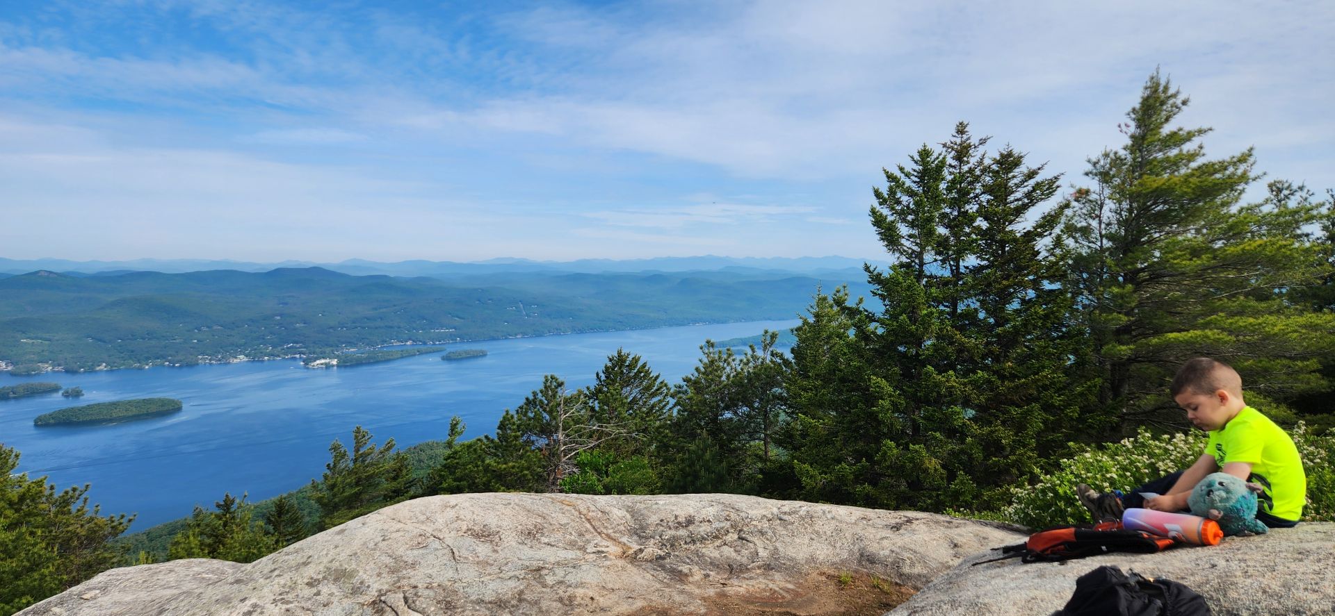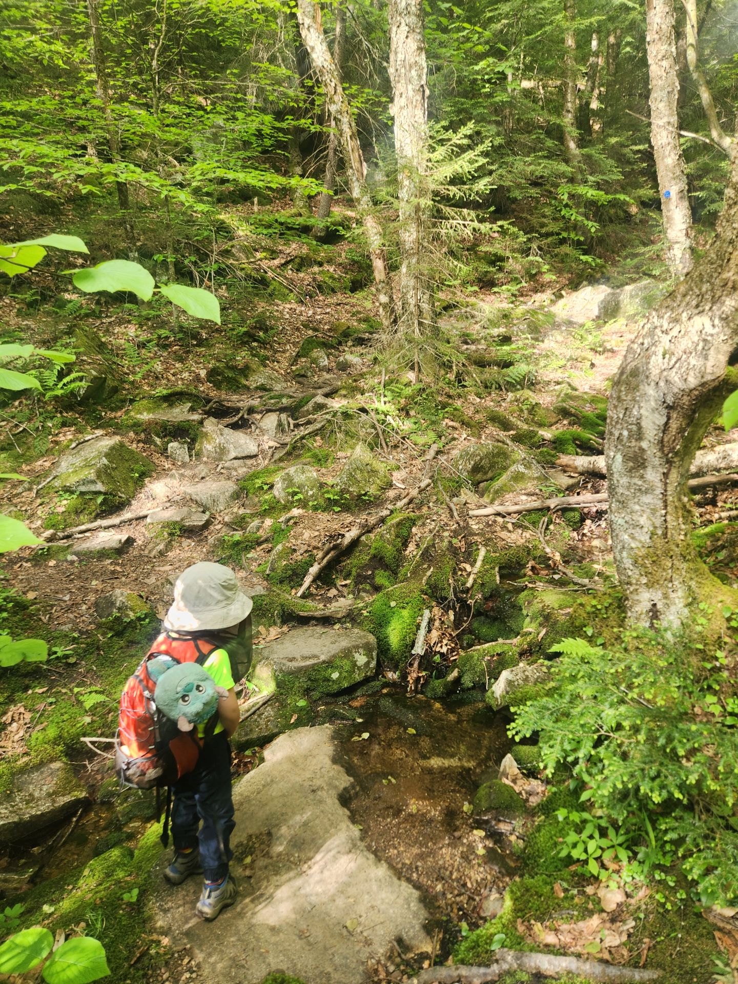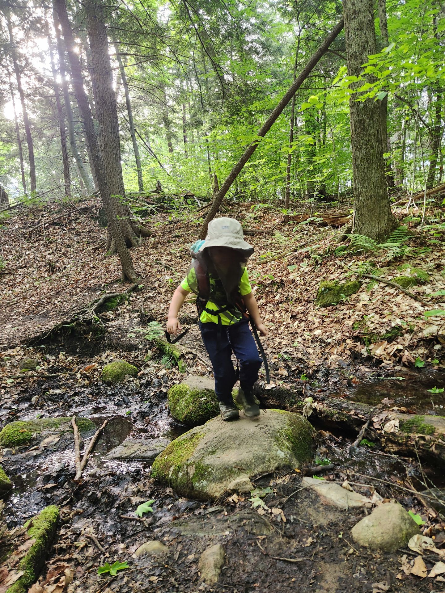 I think Quinn didn't have as nice a time on this hike as on other hikes. The bugs were a huge issue and I wish I'd checked his boots beforehand. I think he's good for 5 miles distance otherwise. We bought him a new pair of hiking boots for the Summer and I hope they last until the fall. I won't assume as much, though and make an effort to check this every time. Also, I think if we're doing a mountain hike, I'll make certain he has plenty of time to enjoy the summit in order to make the labor worth it in his mind.