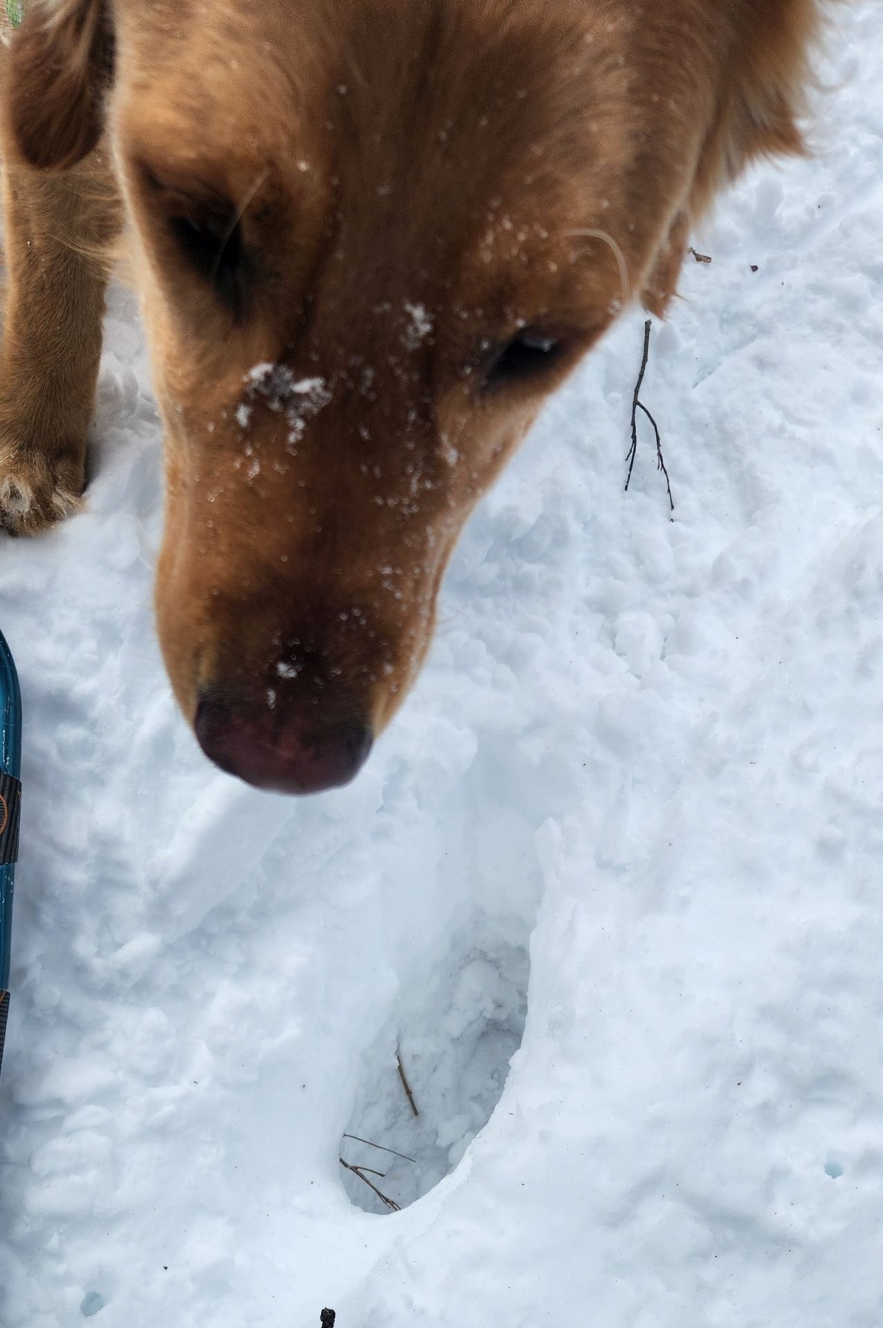 Unfortunately, someone had come through without snowshoes making lots of post-holes along the entire trail. I slid into them a few times. I suspect it was the same person who scattered beer cans and dog faeces throughout the trail. I did my best to clear things up and collect the trash which Sunny carried out.