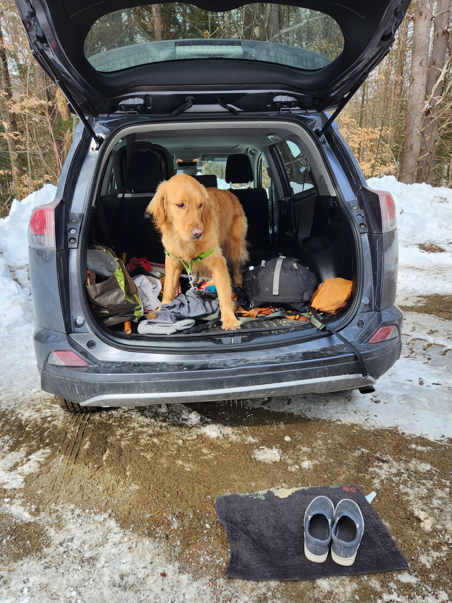 This time I got the idea to bring along an old bathroom rug so I could switch footwear without getting my socks wet. I'll be keeping this in the car henceforth because I am not really built for dealing with that kind of nonsense while sitting in the car seat or the tailgate.