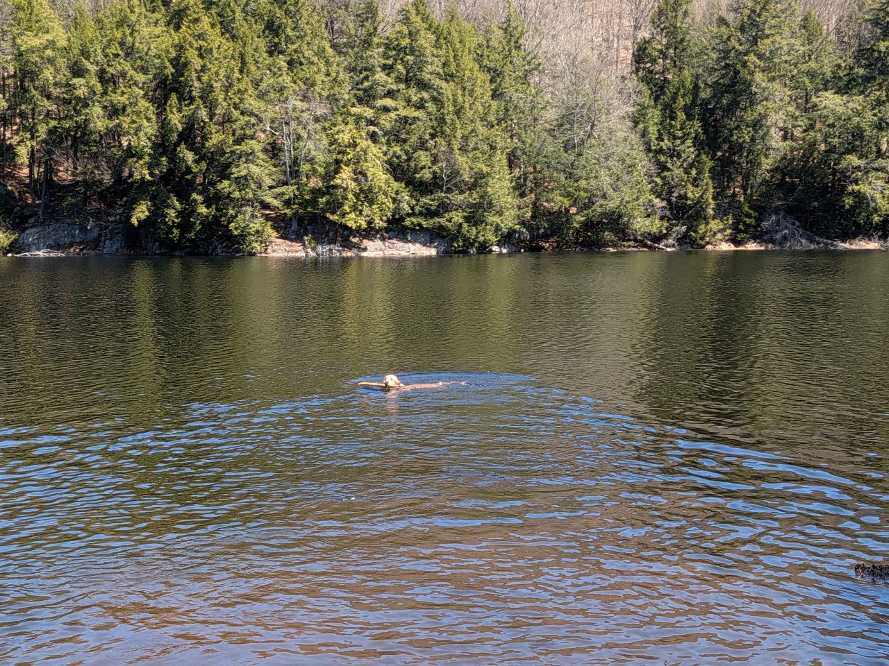 We heard another dog bark across the pond a few times, but we never saw them. According to the person we spoke to on the overlook, there was someone camping over there.